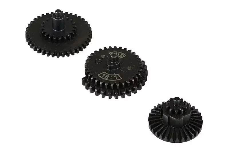 Az SHS 18:1 erősített fogaskerék szett kiváló minőségű acélból készült, CNC megmunkálással, amely garantálja a hosszú élettartamot és a megbízható működést. A precíziós gyártási technológiának köszönhetően a fogaskerekek minimális súrlódással és hatékony erőátvitellel működnek, így ideálisak airsoft AEG tuninghoz. Az SHS fogaskerekek fokozott ellenállást biztosítanak a nagy teljesítményű rugókkal szemben.
